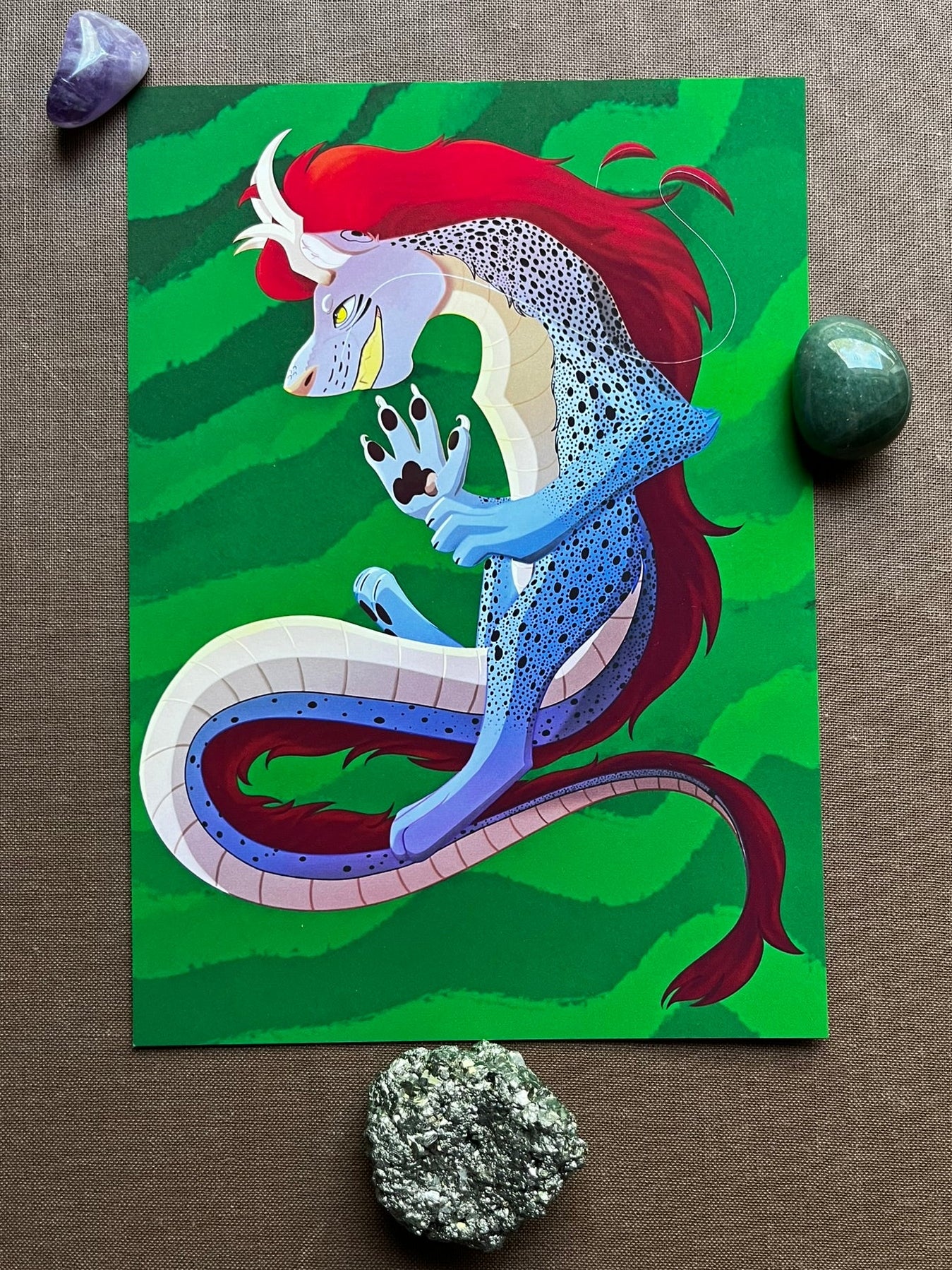 I hope you enjoy this eastern dragon inspired print as much as I do. The king of cats is my personal interpretation of eastern style dragons that came about when I noticed eastern dragons often have cat-like attributes. Whether he breathes fire or not is up for debate.
